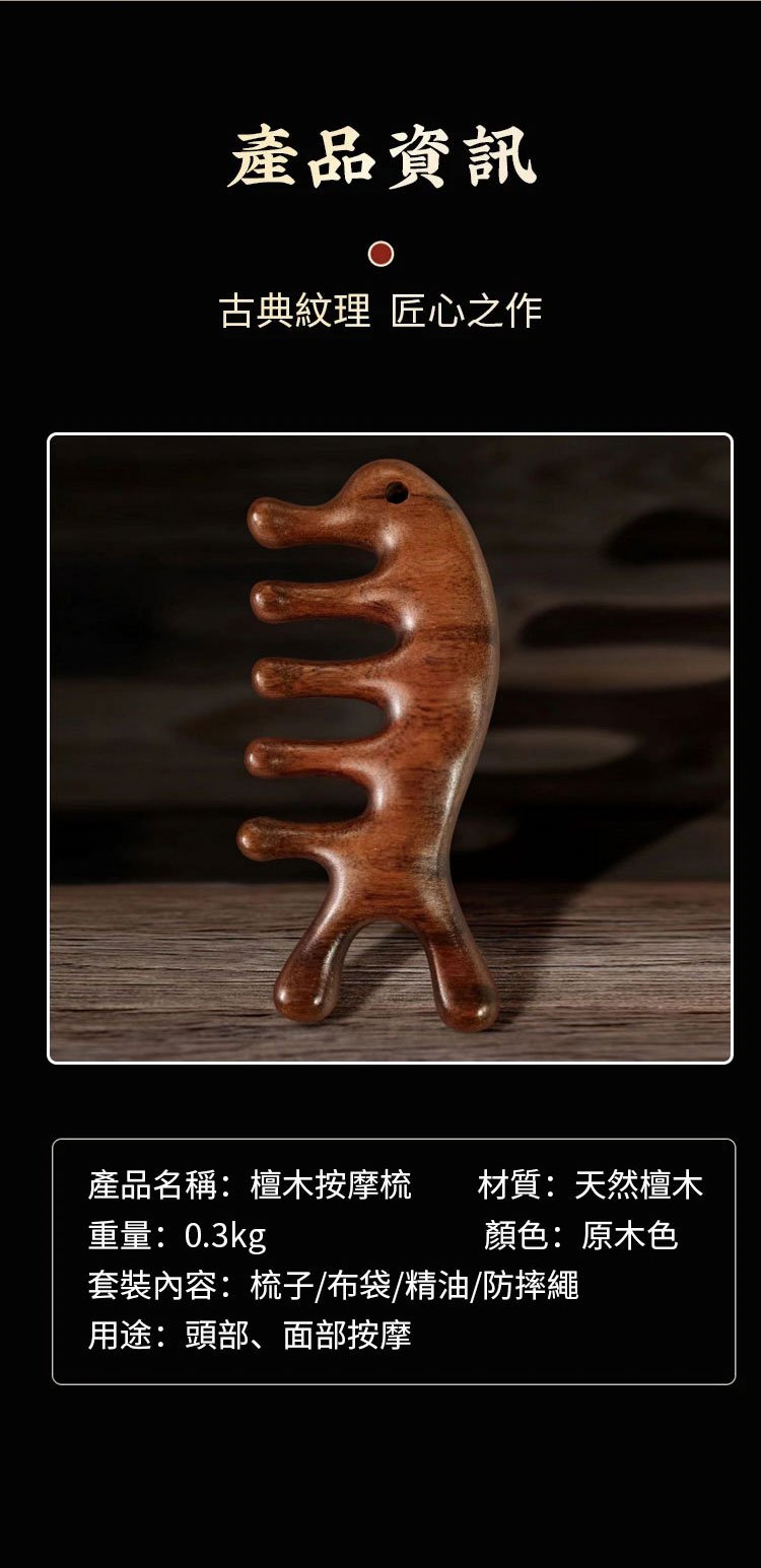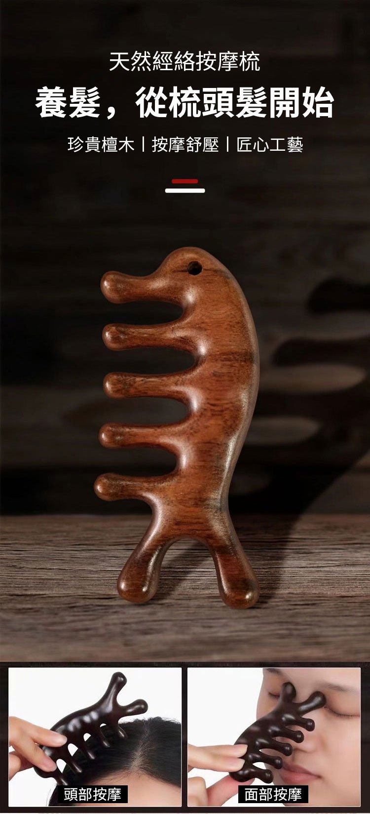 7分鐘前天然檀木美容經絡按摩梳 ◀頭臉按摩◀疏通經絡◀刮痧排毒 按摩穴位促進排毒,面部提拉緊緻 - 【緩解頭痛,按出健康】5入組HK$346