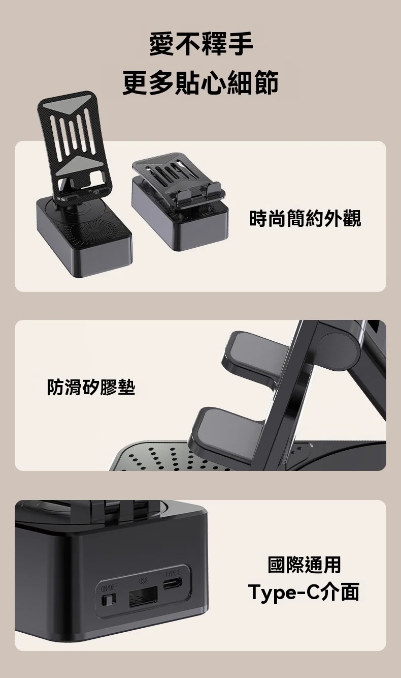 5分鐘前一機多用超省心懶人福音 三合一旋轉手機支架+快充行動電源+藍牙音響隨身多功能數碼神器 - 【品質之選】1入組-NT$998