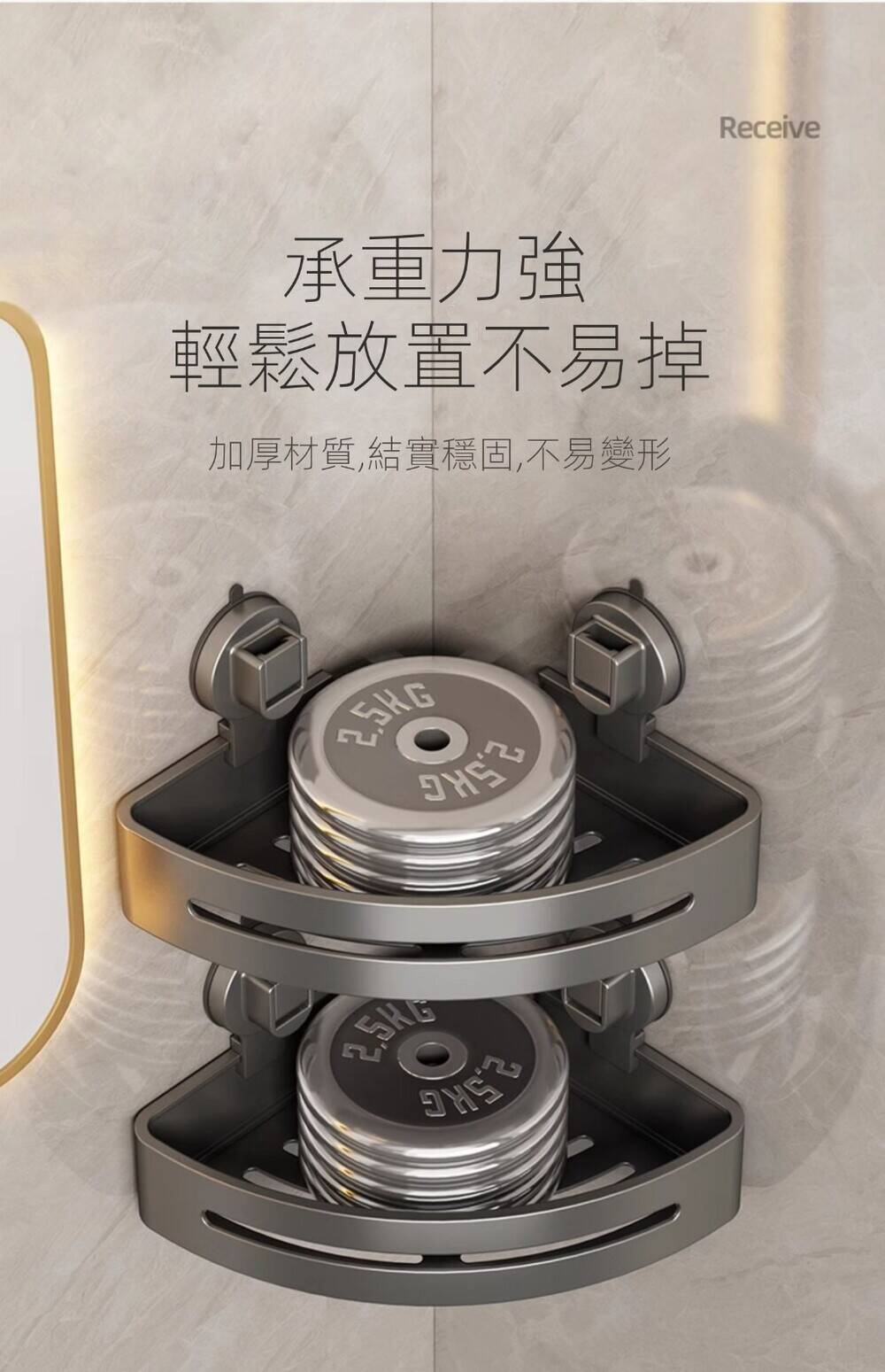 15分鐘前自帶吸盤,可隨時移動重復使用的置物架 免打孔廚房浴室衛生間三角置物架多用途壁掛收納架毛巾架 - 【超夯下殺】買一送二,共三入組 NT$999