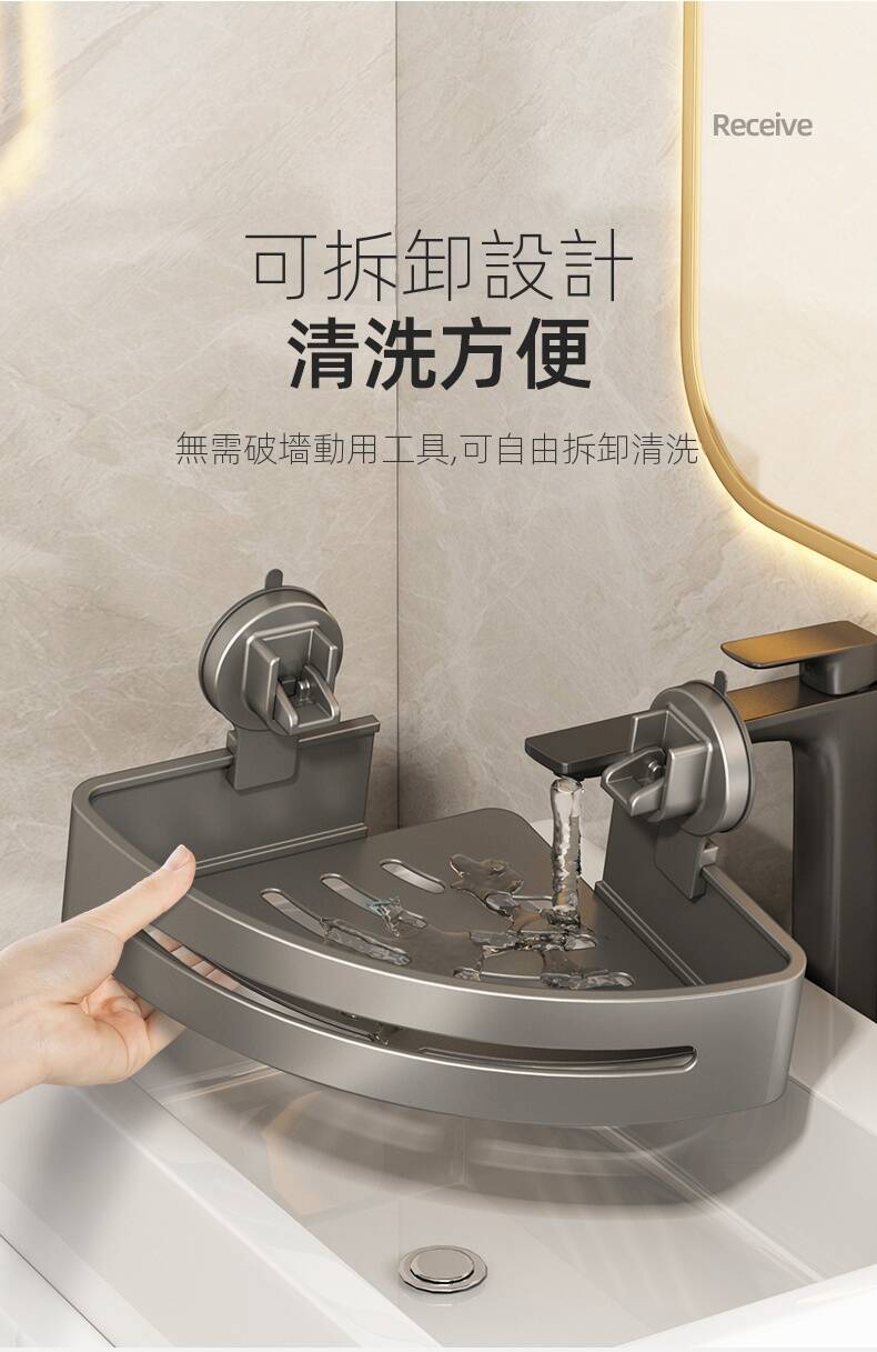 2分鐘前自帶吸盤,可隨時移動重復使用的置物架 免打孔廚房浴室衛生間三角置物架多用途壁掛收納架毛巾架 - 【超夯下殺】買一送二,共三入組 NT$999
