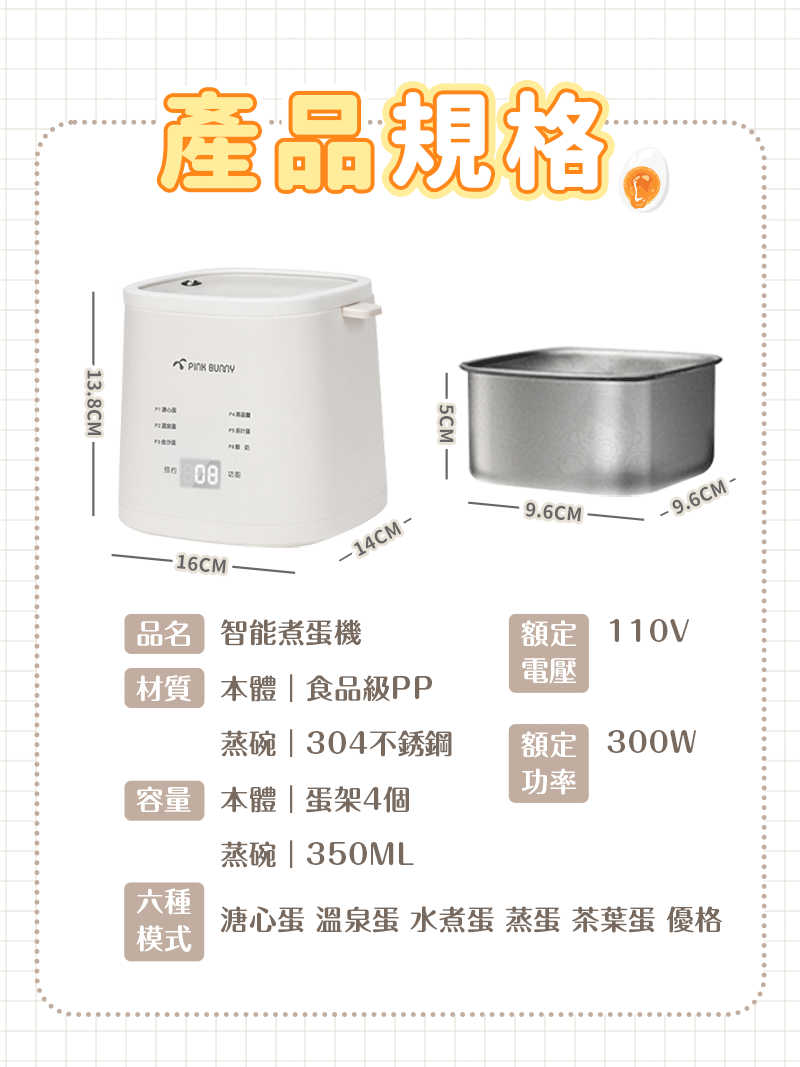 5分鐘前Pink Bunny智能煮蛋機智能控溫烹煮,營養美味輕鬆上桌 - Pink Bunny智能煮蛋機1入組 NT$1090