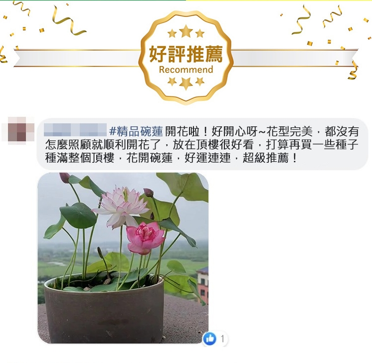 4分鐘前『招財轉運』水培碗蓮 - ★★★店主推薦【50粒+碗蓮專用營養液2+養殖盆】【綠葉+莊根+促芽+催花】,開爆了!僅需NT$800