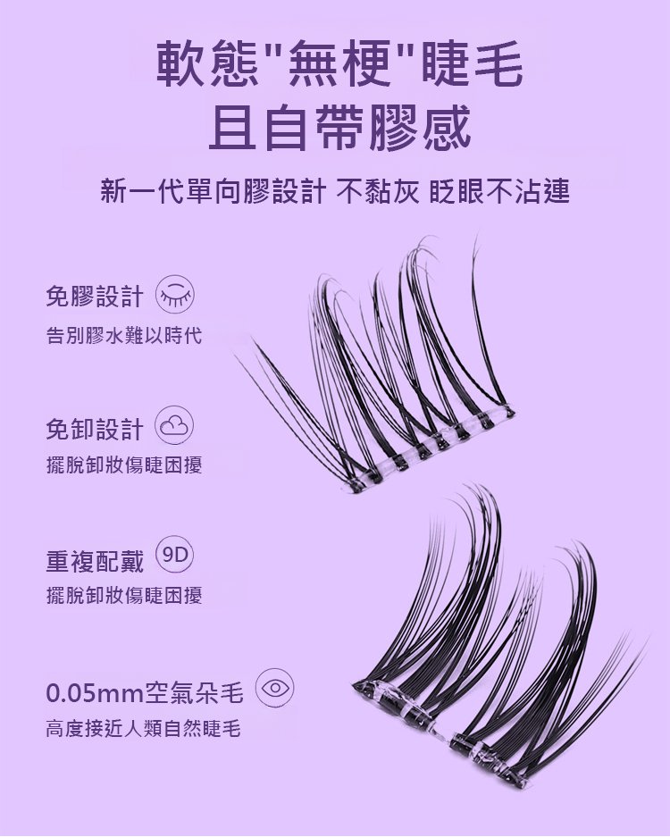 12分鐘前【0甲醛】無梗免膠媽生假睫毛 - 【超殺】3入組$229