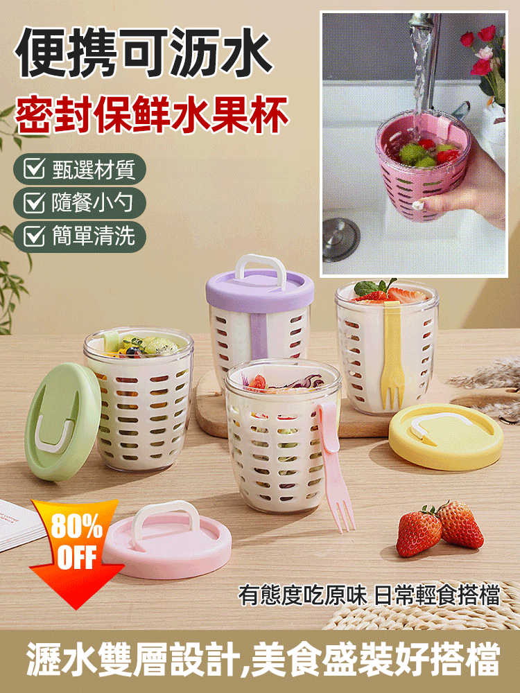 20分鐘前便攜可瀝水密封保鮮水果杯 - 買二送二1099